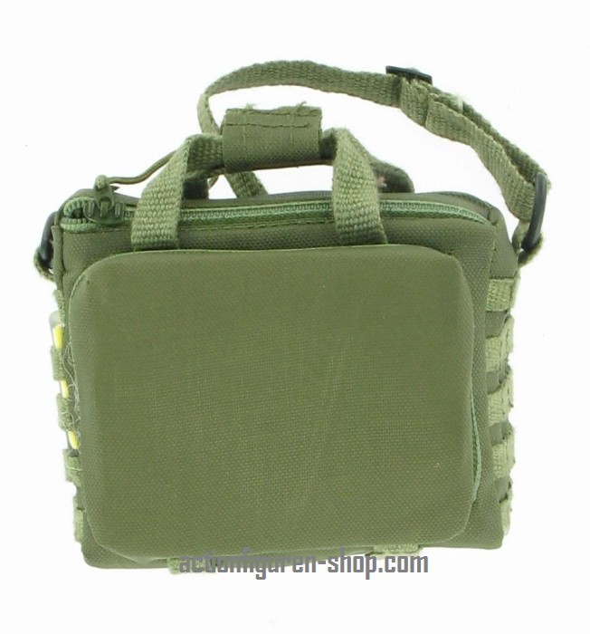 Komplette Figur mit Body und Kopf, Tactical Pants (sandfarbige Kampfhose), schwarzer U:S: Military Sweather mit Schulterklappen sowie verstärket Schultern und Ellebogen, "echte" schwarze 5.11 Tactical Boots, Pistole Glock G18C, mit einem normalen und eine langen Magazin, 2 Leuchtstäbe (Knicklichter) sowie einer perfekten grünen taktischen - Tasche.