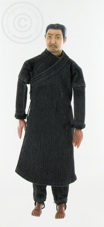 Die Kleidung ist aus grau/schwarzem Stoff - ideal für Piraten, China-Krieger oder andere Figuren aus längst vergangenen Zeiten und Epochen.