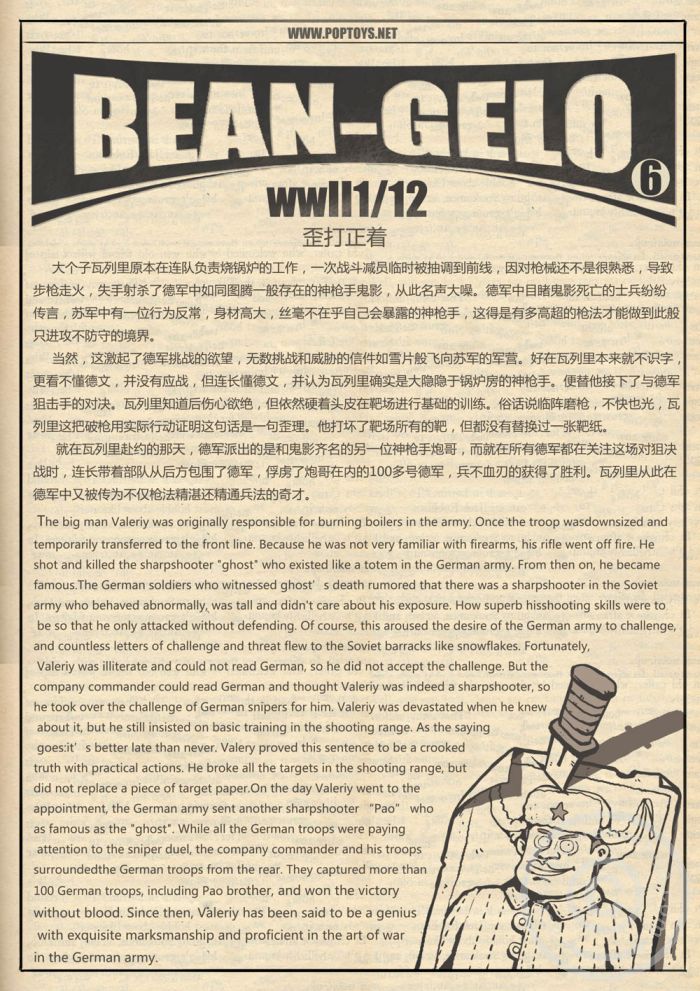 The POPTOYS team introduce the new 1/12 series of [Bean-Gelo] today to all of you - after a year of design and development. This series of products from the world view setting, to the finalization of the original painting, production and research and development and finally being presented to you. The series of [BEAN-GELO] aims to interpret the history of World War II in a humorous and fanciful way, which has a profound impact on all mankind. We will set each character's own character, attribute, hobby and specialty, no matter is leaders or officers and soldiers. At present, there are more than ten original figures in the series of [BEAN-GELO], including the states of United States, the Soviet Union and Germany. The characters in the second part, the third part and the fourth part of the series will also meet with you soon! Hope the series of [BEAN-GELO] can make more players feel that toys can have fresh vitality.