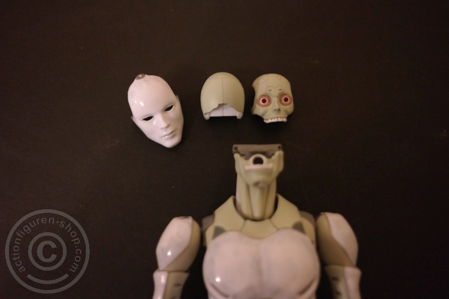 Die Figur kommt mit 3 Paar Händen, beweglichen Augen, beweglichem Unterkiefer und Gesichtsmaske.