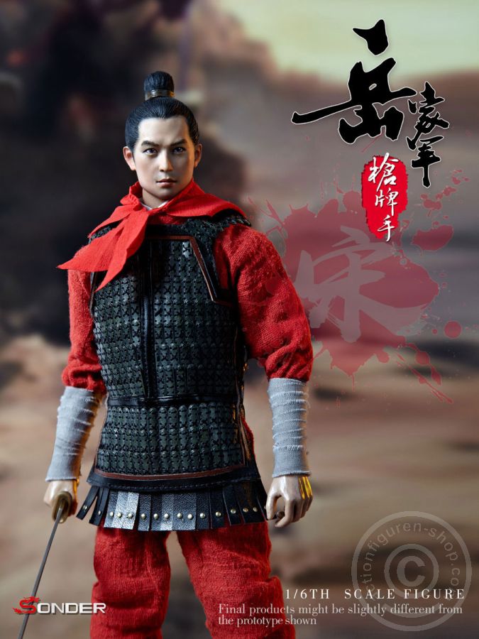 Die Figur zeigt einen Krieger aus der Yue Armee (Song Dynastie) im Maßstab 1:6 (ca. 30cm große Figur) - Historich korrekte Bekleidung usn Ausrüstung, sehr viele Details und die Verwendung authentischer Materialien (Stoff, Leder, Metall, Holz) zeichnen diese voll bewegliche Figur aus.Die Song-Dynastie (Pinyin Sòngcháo, W.-G. Sung Ch'ao) war von 960 bis 1279 die herrschende Dynastie im Kaiserreich China. Sie teilt sich in die „Nördliche“ und „Südliche“ Song-Dynastie. Die „Nördliche“ (Bei Sòng) regierte 960–1126 in Kaifeng, die „Südliche“ (Nán Sòng) 1126–1279 in Hangzhou.