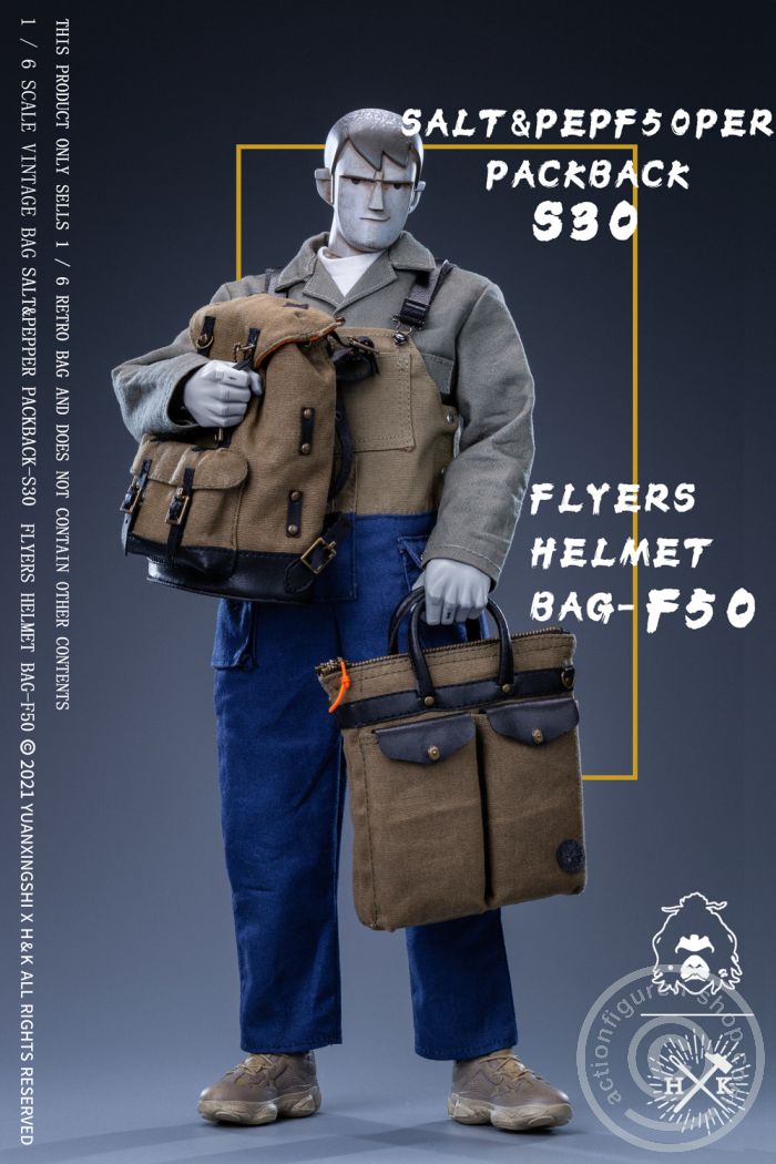 Vintage Flyers Helmet Bag - Salt & Pepper Helmet Bag-F50 - in 1/6 scale