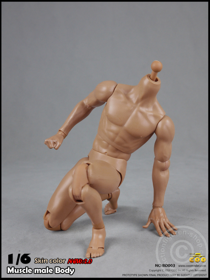 Der Körper ist muskulöser als die Versionen COO-BD001 sowie -002 und ist für Köpfe OHNE eigenen Hals geeignet; bei einer ca. Schulterhöhe von 27cm (was mit Kopf im Maßstab 1:6 einem ca.1,92 m großen Mann entspricht)