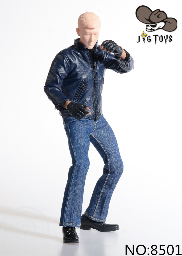 Bekleidungs Set mit blauer Lederjacke im Maßstab 1:6 (für ca. 30cm große Figuren)
