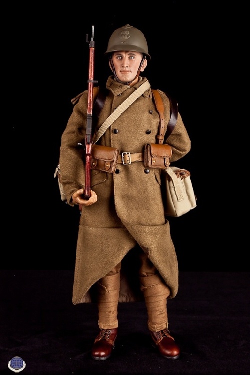 Sehr schöne Figur eines französischen Soldaten aus dem Jahr 1940. Passt zum Thema WW-II und auch zum WW-I sehr gut. Alle Ausrüstungen sind aus Leder- (artigem Material), sehr feine Verarbeitung, Gewehr aus Holz und Metall, funktionales Bajonett, Helm aus Metall usw...
