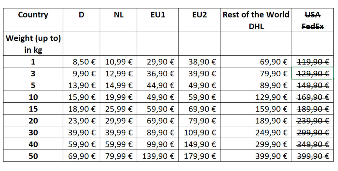 USA - Currently we don´t offer any shipping to the USA. Best is to use a service like Shipito.com.
