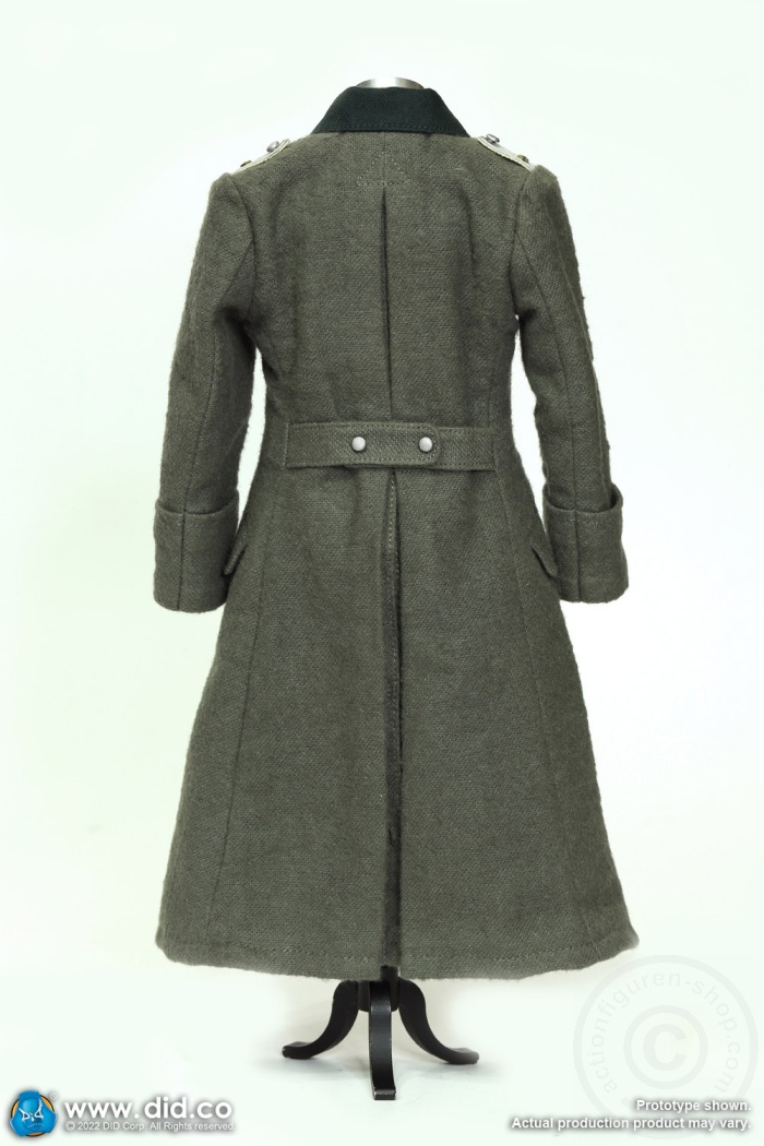 Winter wears the WWII German officer uniform and breeches, with a white service shirt inside and a brand-new M36 greatcoat on top. He can wear helmet or the M34 field cap. The light brown scarf and grey toque are the neckwear. The grey toque can cover the head to keep warm. The all genuine-leather jackboots are on his feet.